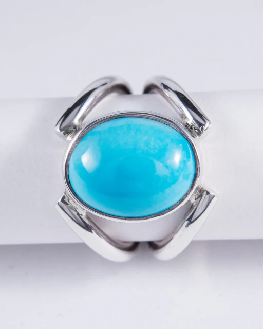 Stunning Sterling Silver Ring with Kingman Mine Turquoise cabochon. The stone has been hand carved here in New Zealand by Allan Moreton.