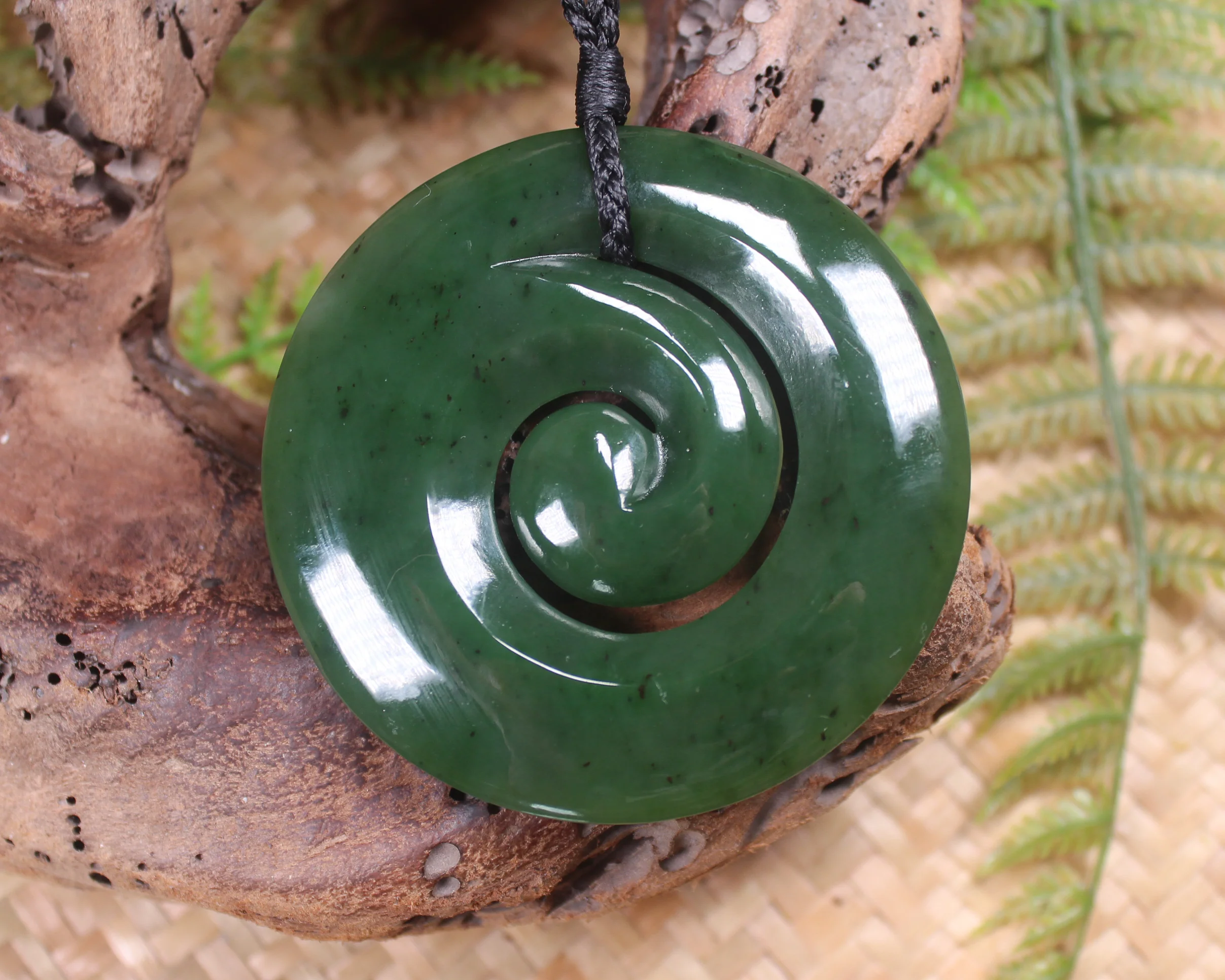 NZ Greenstone XLarge Koru Pendant (BA261) Kawakawa Pounamu