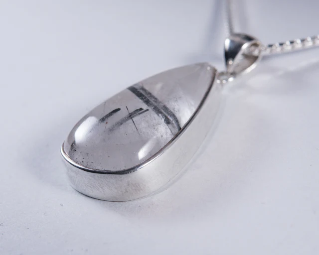Tourmalated Quartz Sterling Silver Pendant (AH813)