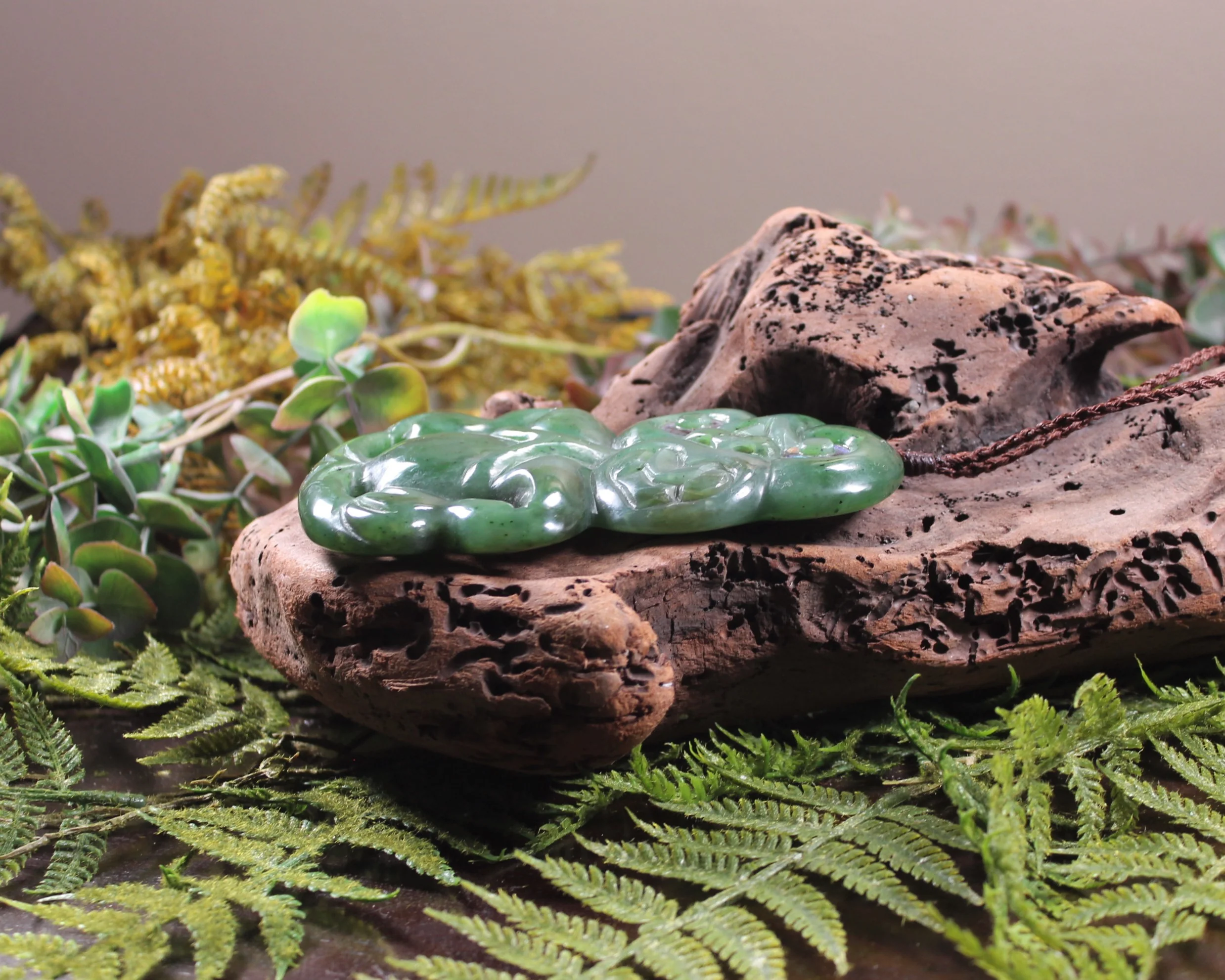 Nicely detailed Hei Tiki made from stunning Hapopo Pounamu, very nice statement piece. Hand carved locally.